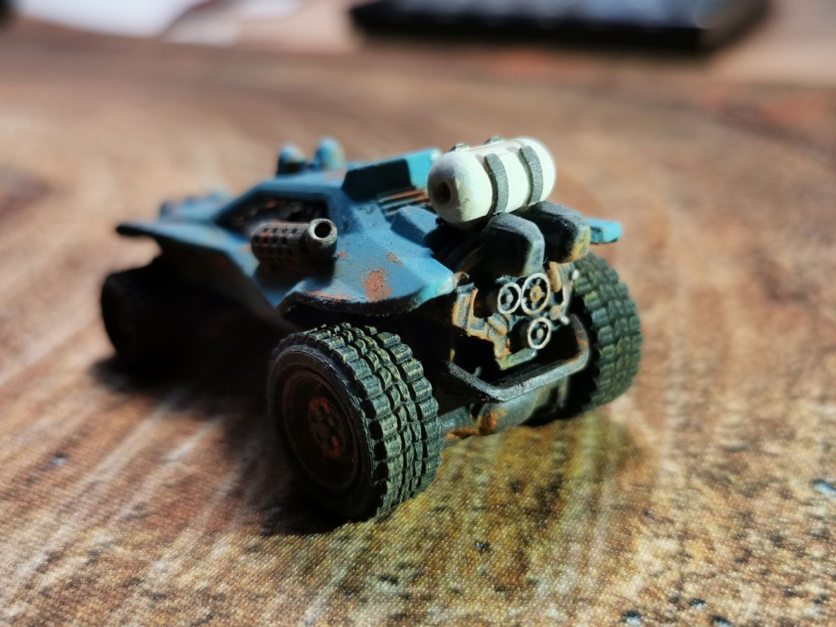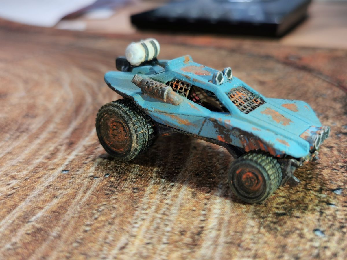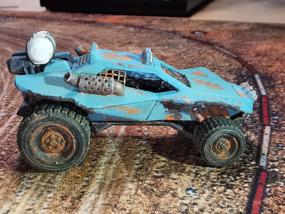 Nachdem Buggies zu den "Lightweight-Vehicles" zählen sind diese in fast allen Startteams vorhanden. Lasst Eurer Kreativität freien Lauf, schaut aber darauf, dass die fertigen Modelle spielbar sind. Wir wollen diese ja wie gesagt nutzen, um unsere Spiele zu forcieren. Bestückt die Autos mit der gewünschten Ausrüstung und gestaltet sie "Wasteland-ready".