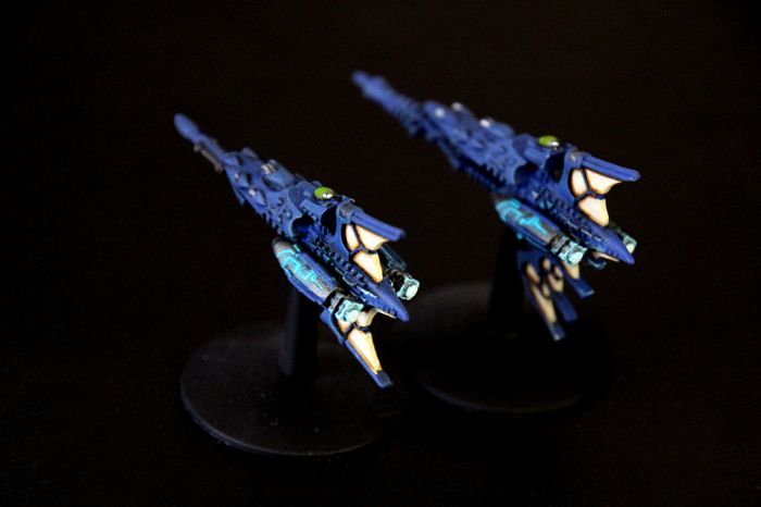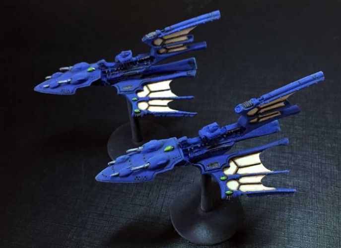 Die Eldar Flotte aus unserer letzten Battle Fleet Gothic-Kampagne mit den grazilen, wendigen Schiffen...