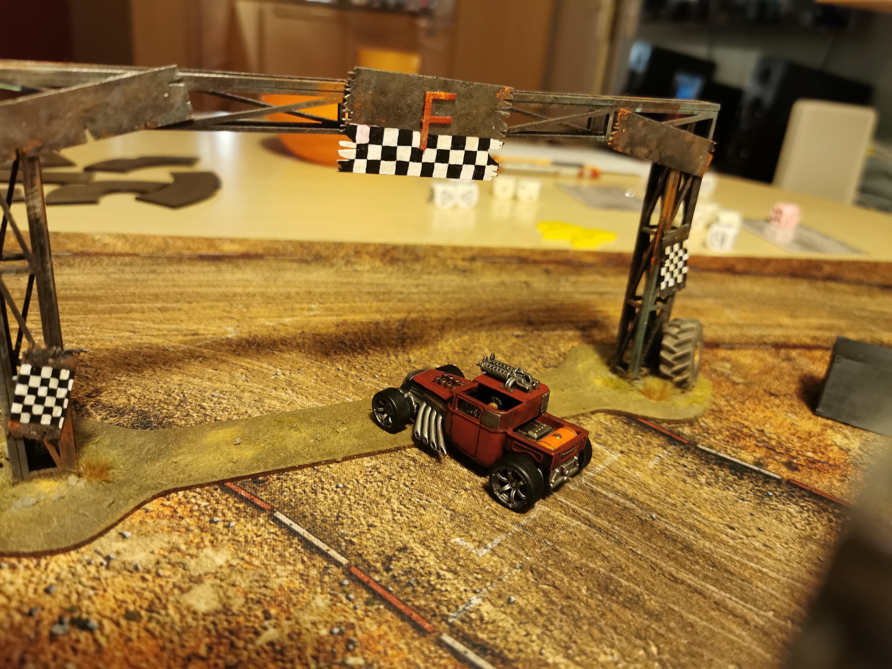 In der postapokalyptischen Welt von Gaslands ist das Szenario Death Race das ultimative Spektakel. Hier kämpfen die Fahrer nicht nur um Ruhm und Ehre, sondern auch ums nackte Überleben. Die Regeln sind einfach: Es gibt nahezu keine. Alles ist erlaubt, um als Erster die Ziellinie zu überqueren. Allein die Reihenfolge der Tore muss für einen Rennsieg eingehalten werden.