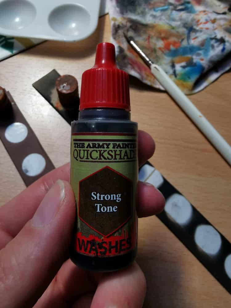 Für das bisschen mehr an Schlieren und Öleffekt verwendete ich außerdem Strong Tone Quickshade (Wash) von Army Painter.