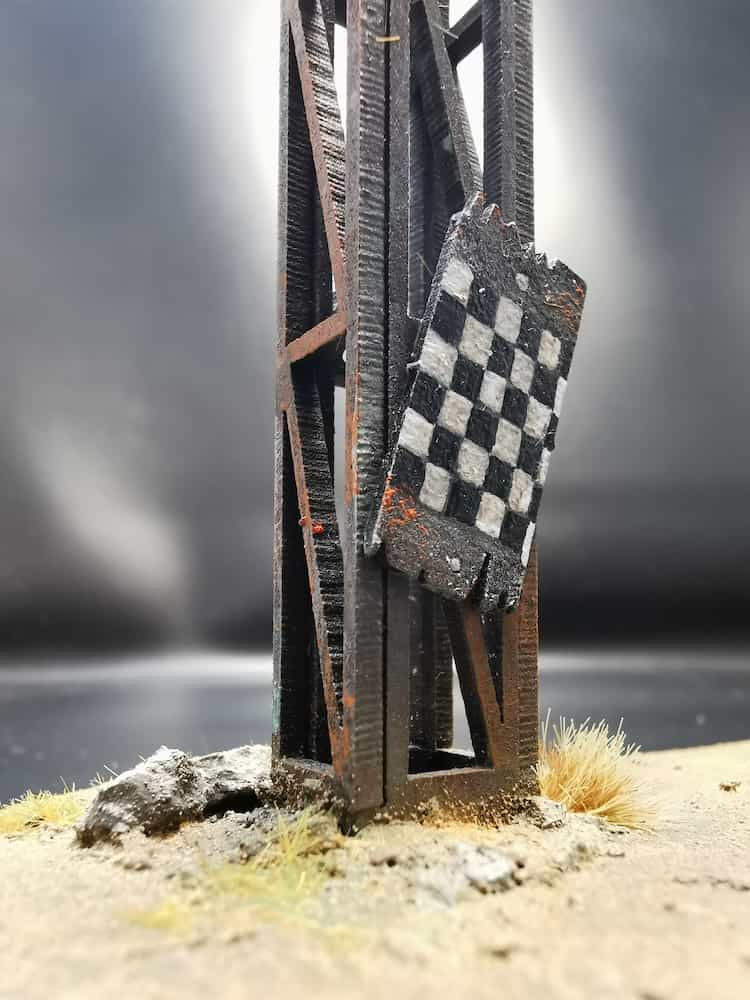 Abschließend wurde das Ziel-Tor mit Zusatzteilen in Zielflaggen-Optik gestaltet und somit von den restlichen Toren etwas abgehoben. Das Ergebnis kann sich sehen lassen und wird beim nächsten Spiel den Tabletop sicher aufpeppen und den Spielern hoffentlich richtig Stimmung machen.
