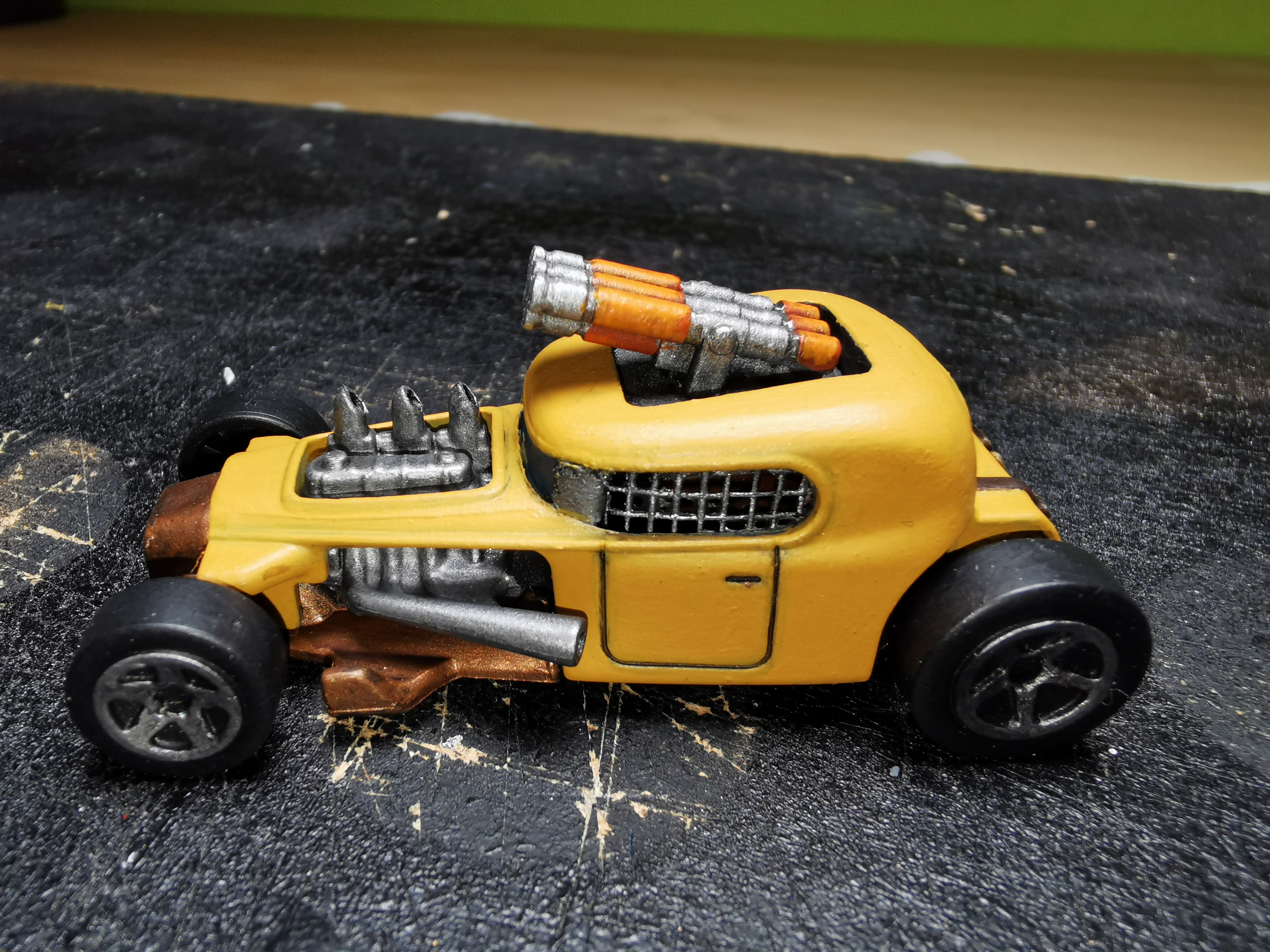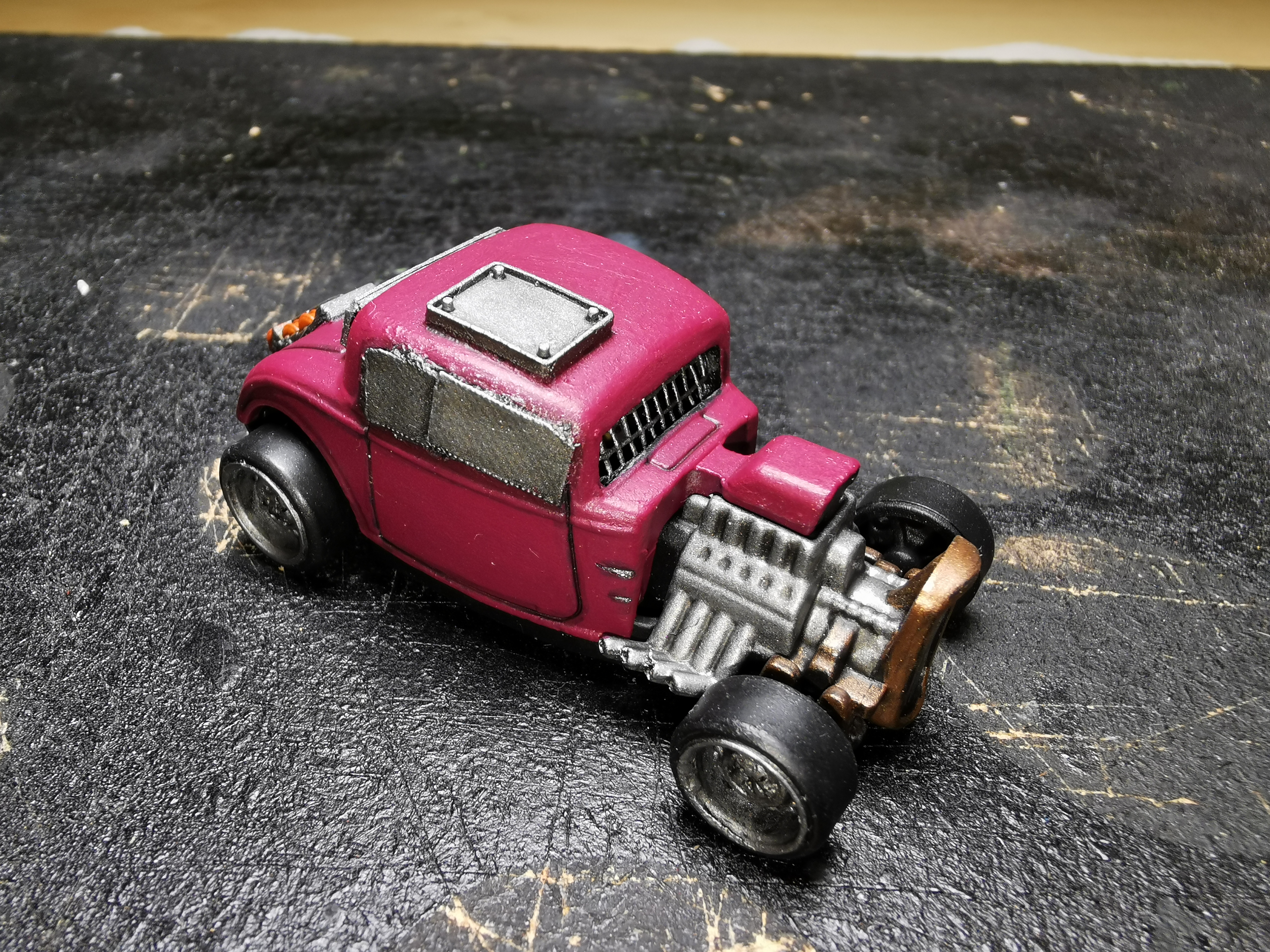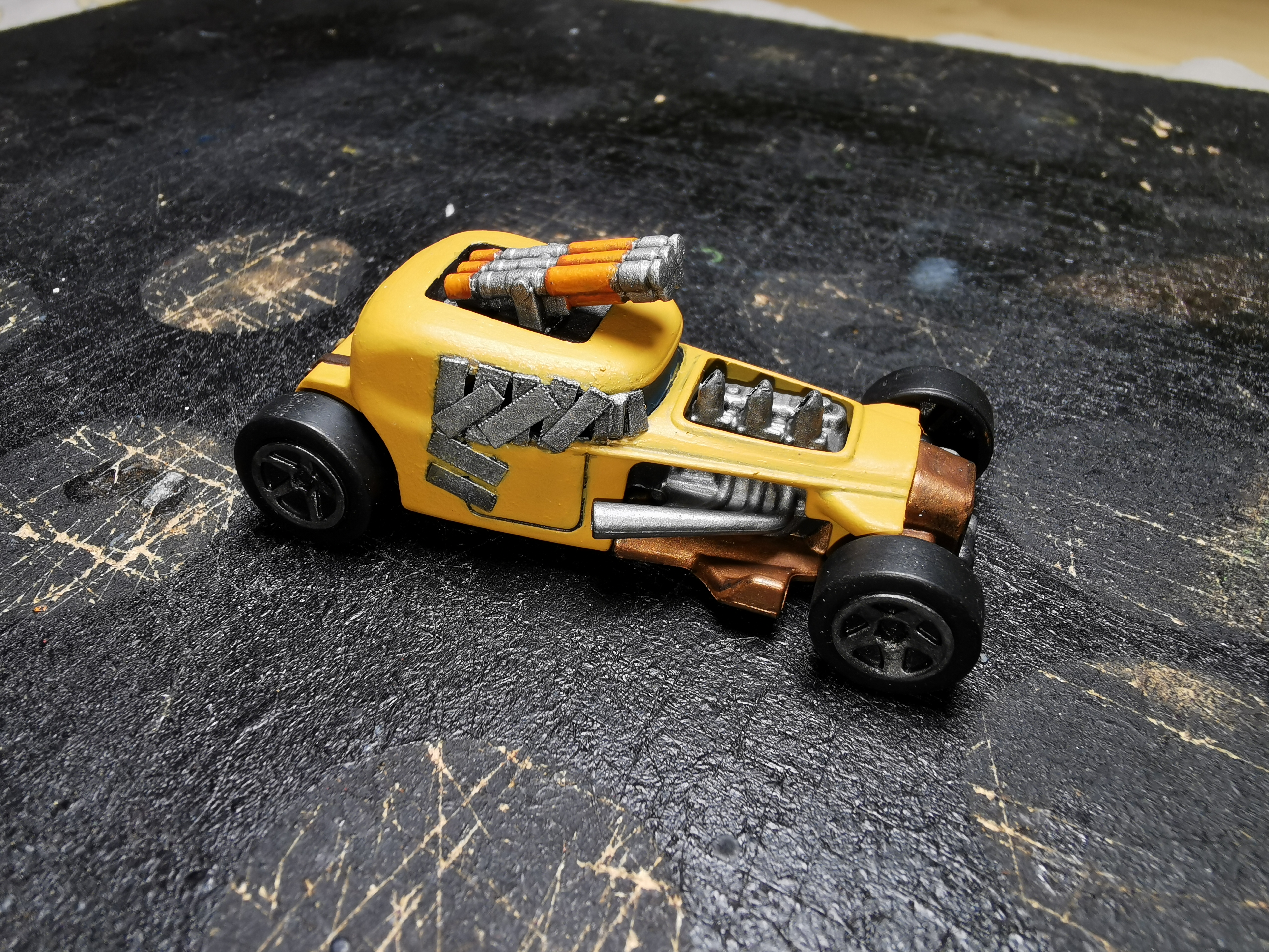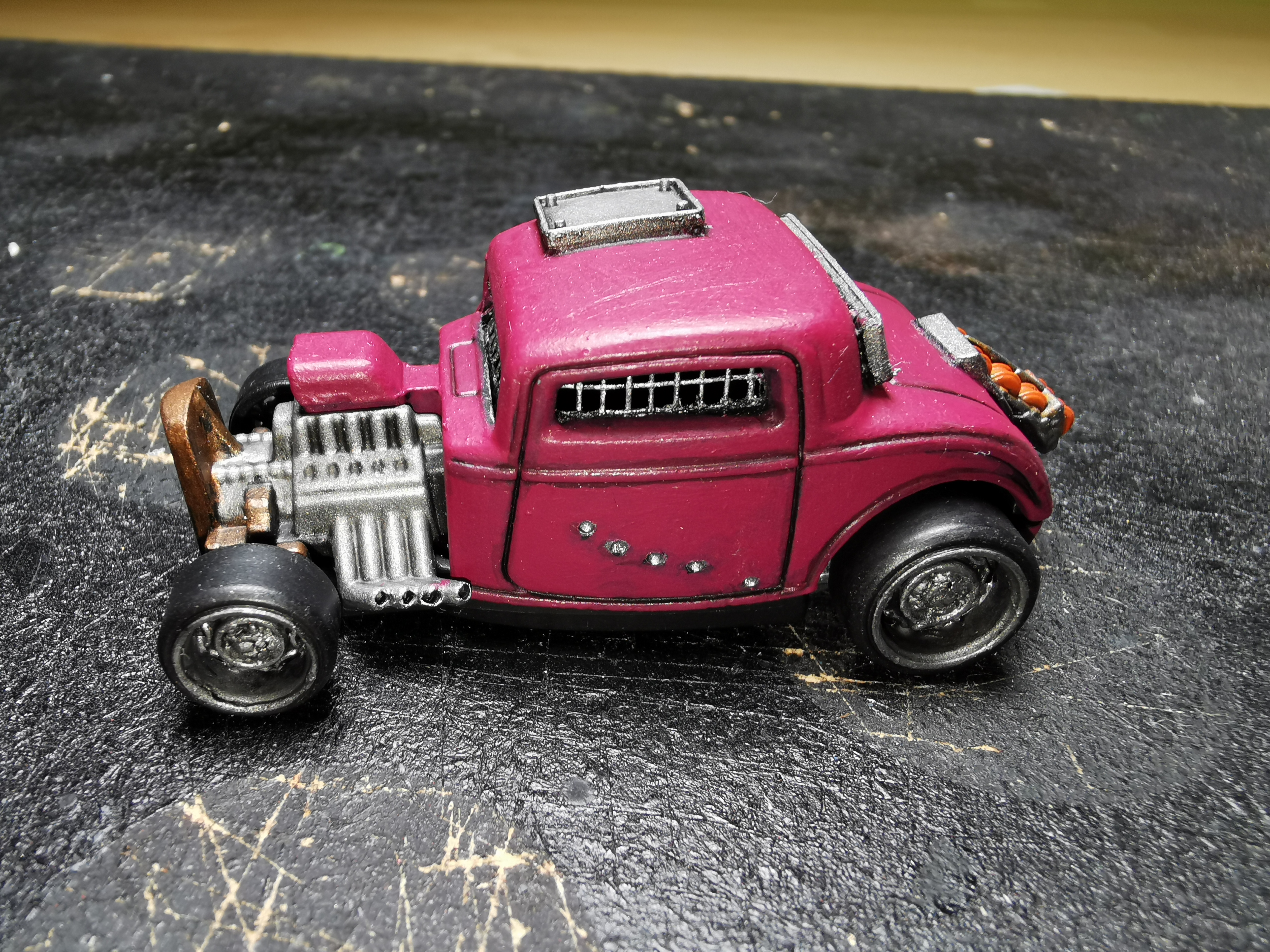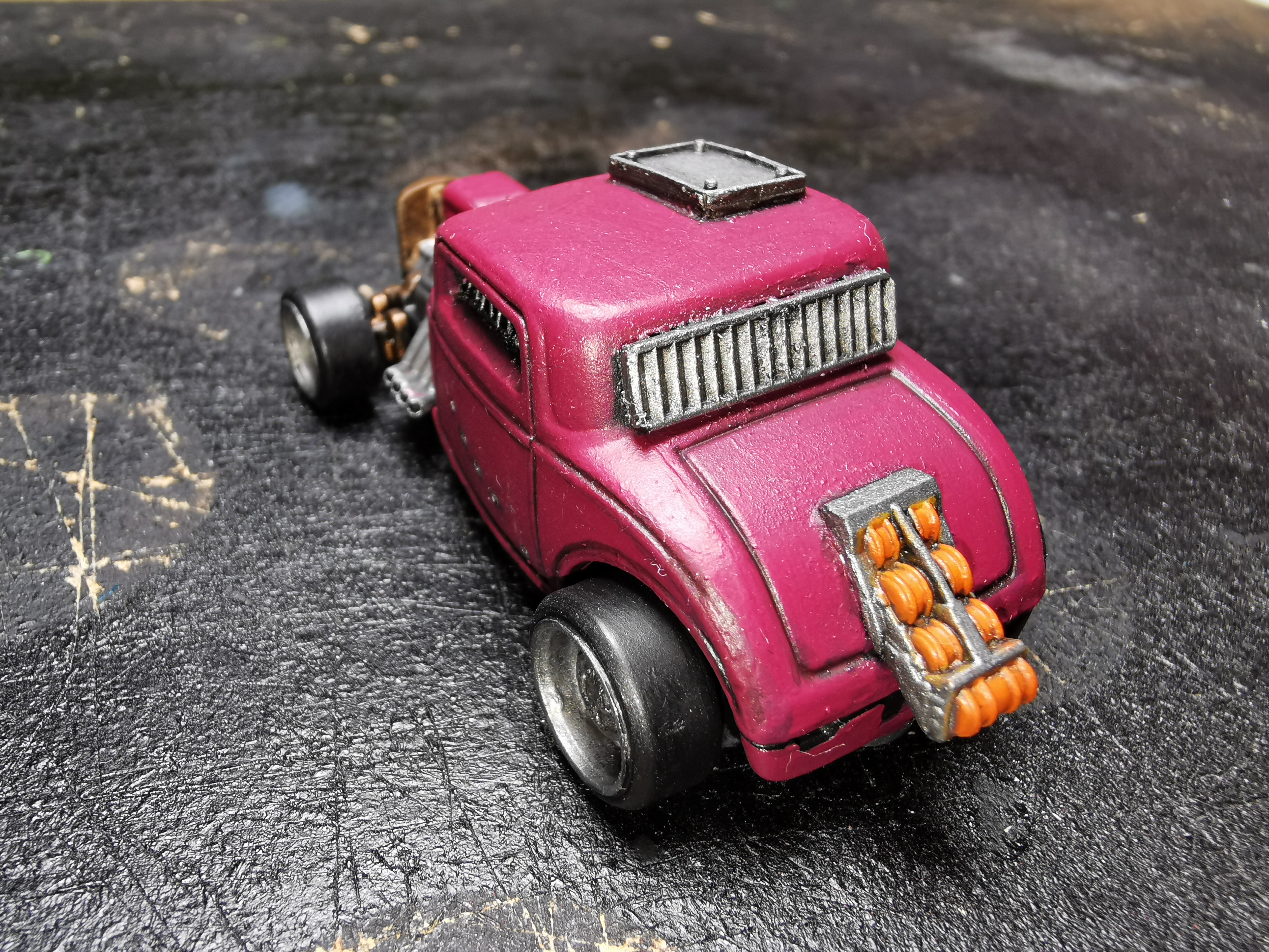 RCT, einer unserer Spieler stockte seinen Fuhrpark für Gasland, das postapokalyptische Autokampf-Tabletop-Spiel um zwei neue Fahrzeuge auf. Er erweiterte um zwei Wagen des Typs Auto. Die Ausgangsmodelle sind ein Hot Wheels 1932 Ford und ein Hotwheels Mod Rod.