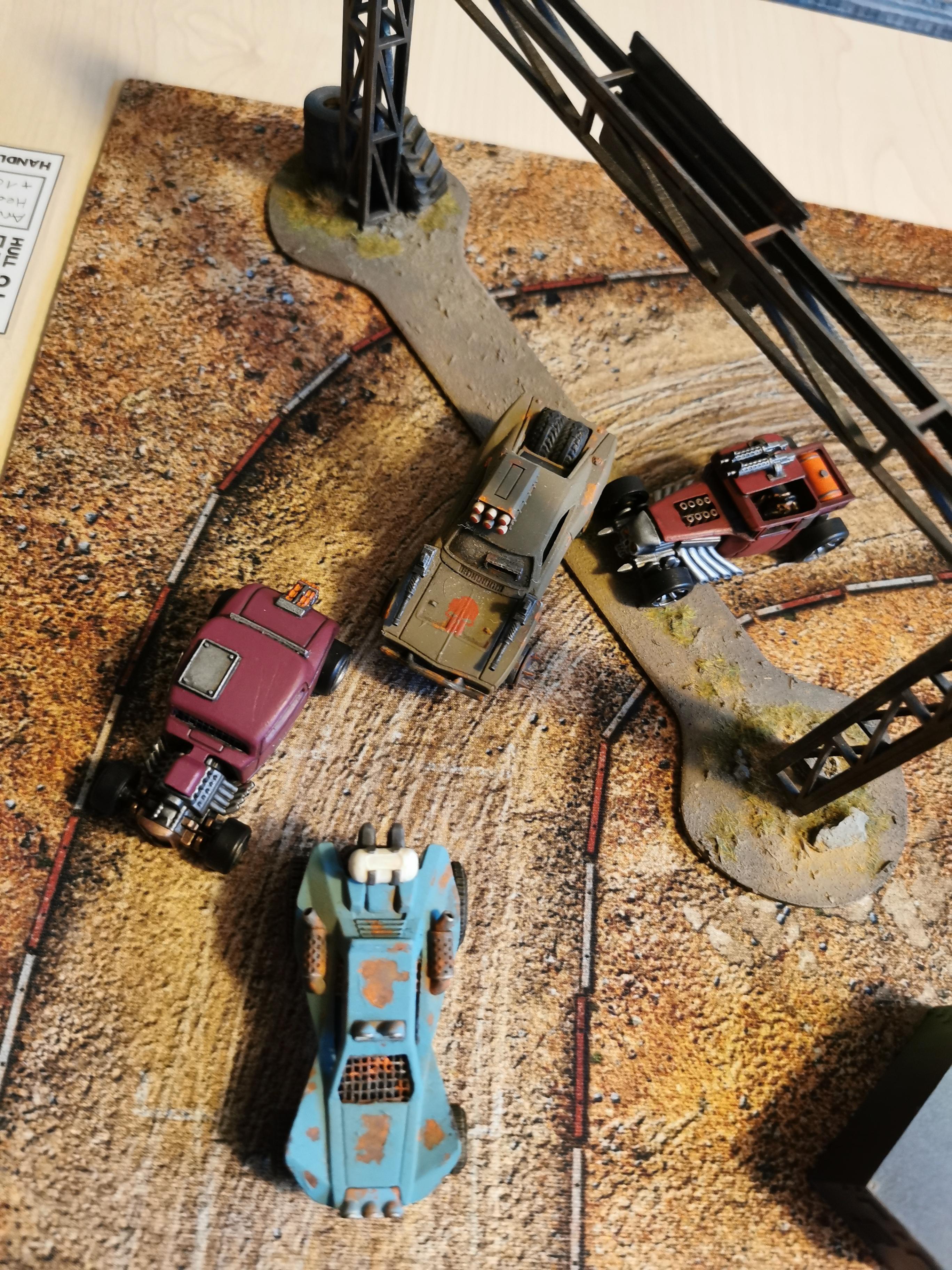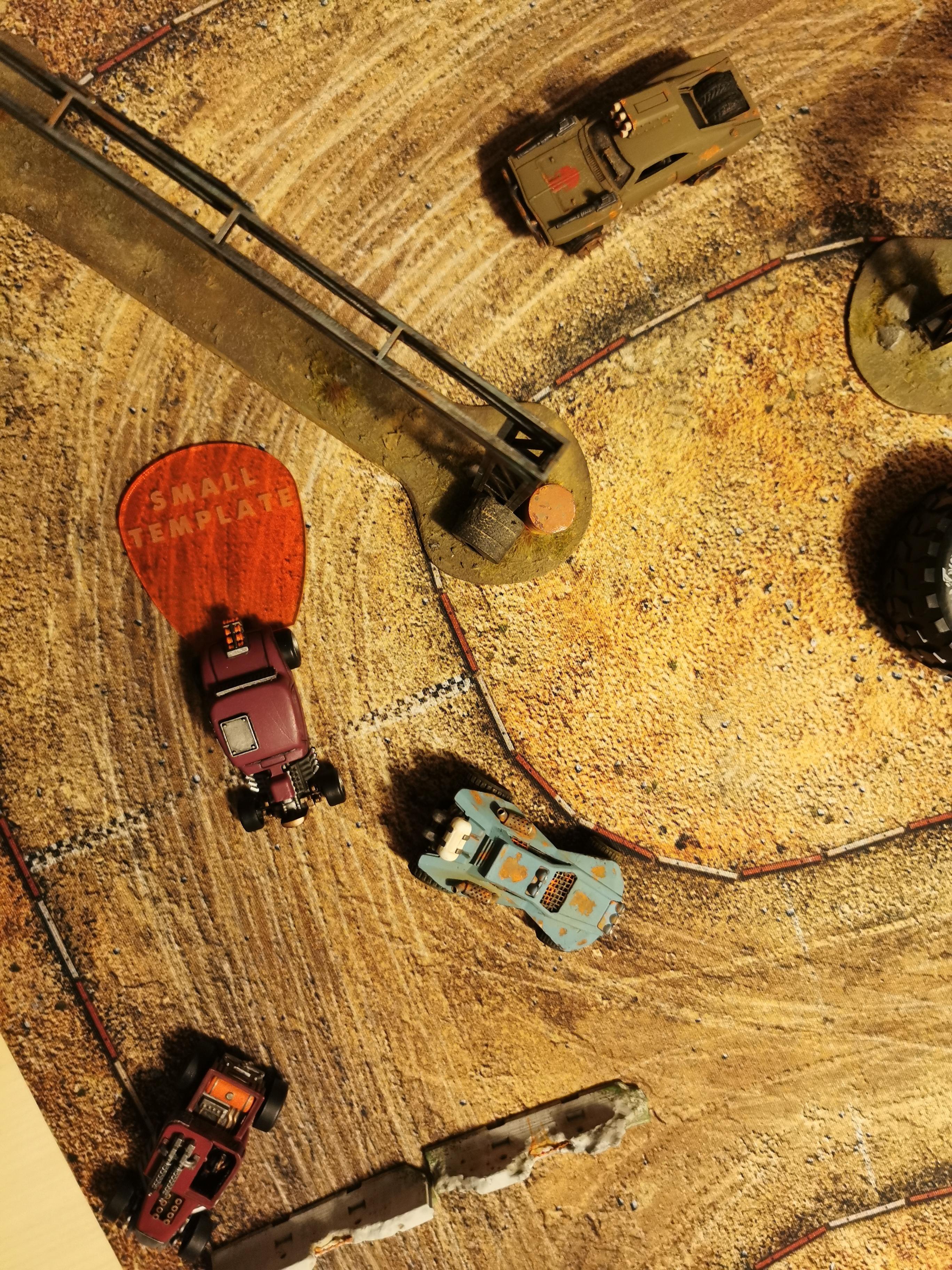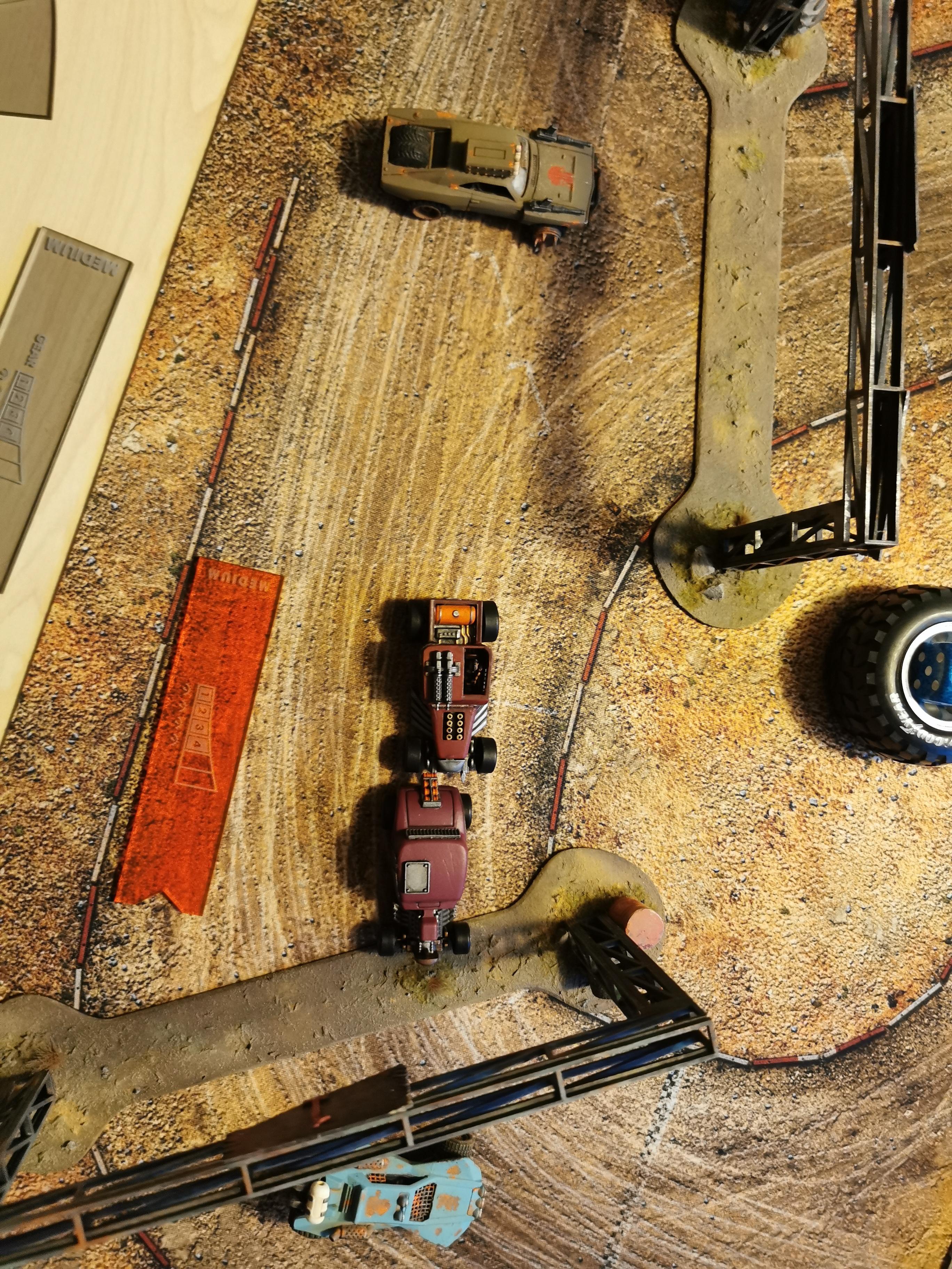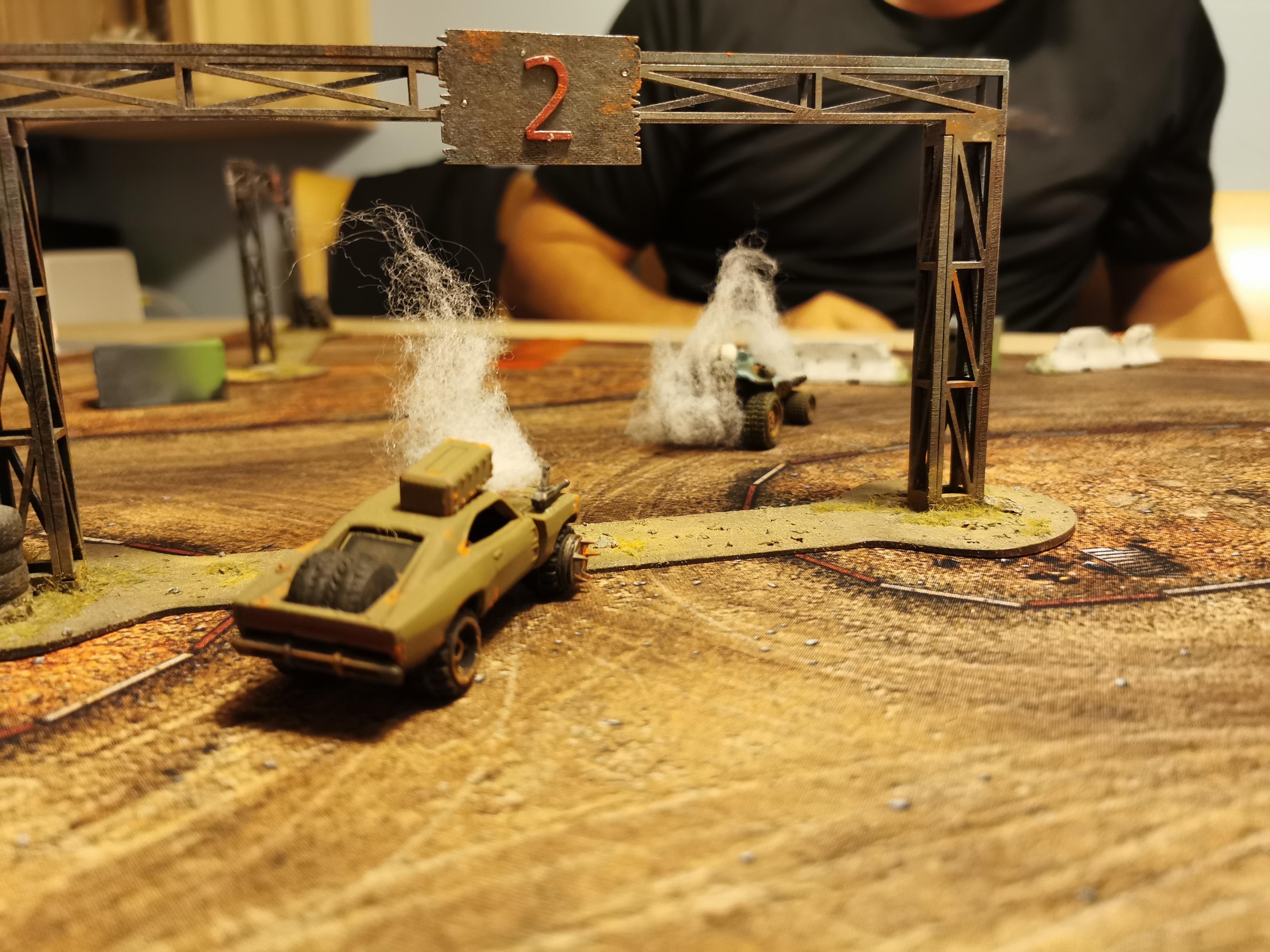 In der postapokalyptischen Welt von Gaslands ist das Szenario Death Race das ultimative Spektakel. Hier kämpfen die Fahrer nicht nur um Ruhm und Ehre, sondern auch ums nackte Überleben. Die Regeln sind einfach: Es gibt nahezu keine. Alles ist erlaubt, um als Erster die Ziellinie zu überqueren. Allein die Reihenfolge der Tore muss für einen Rennsieg eingehalten werden.