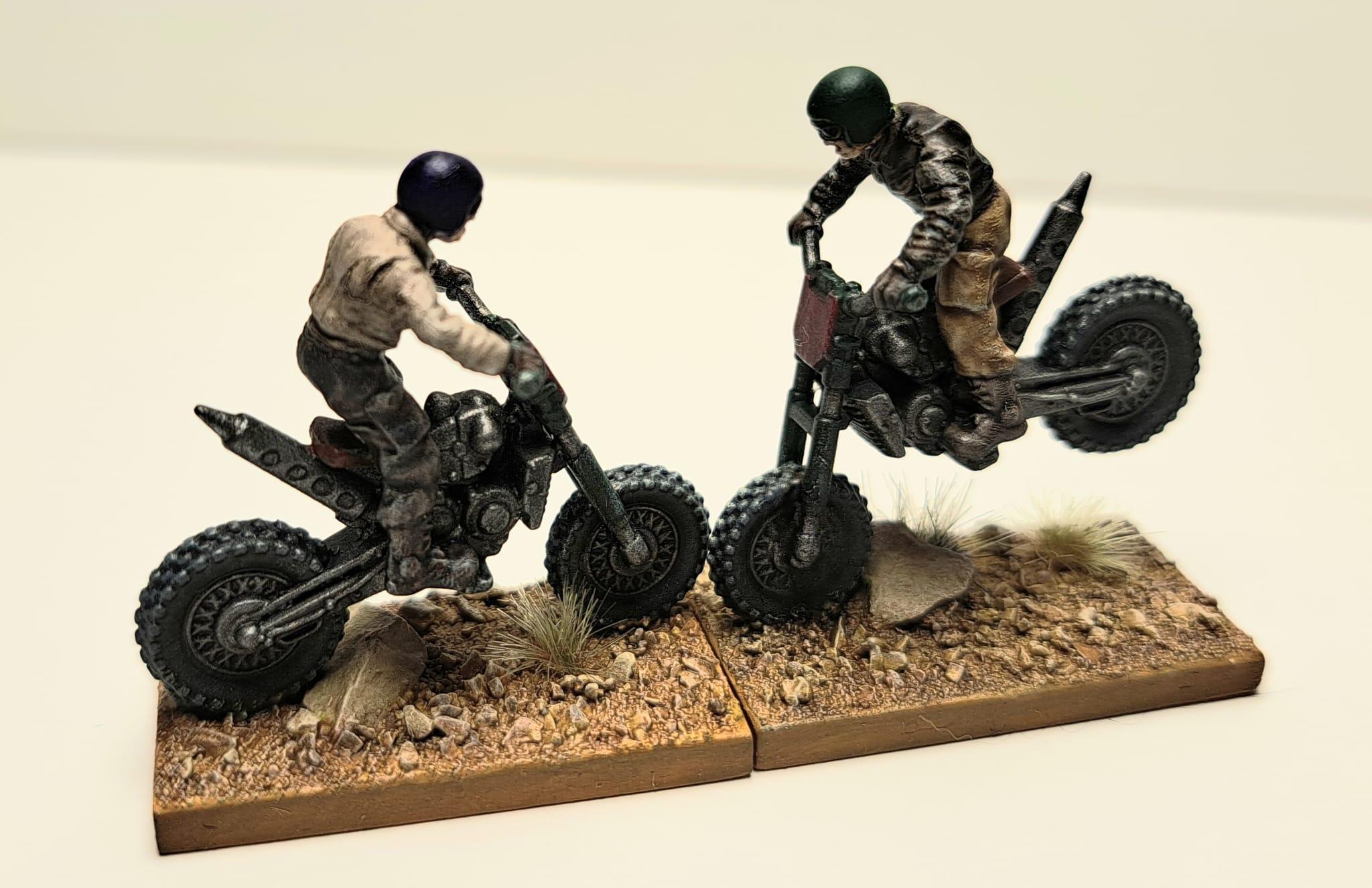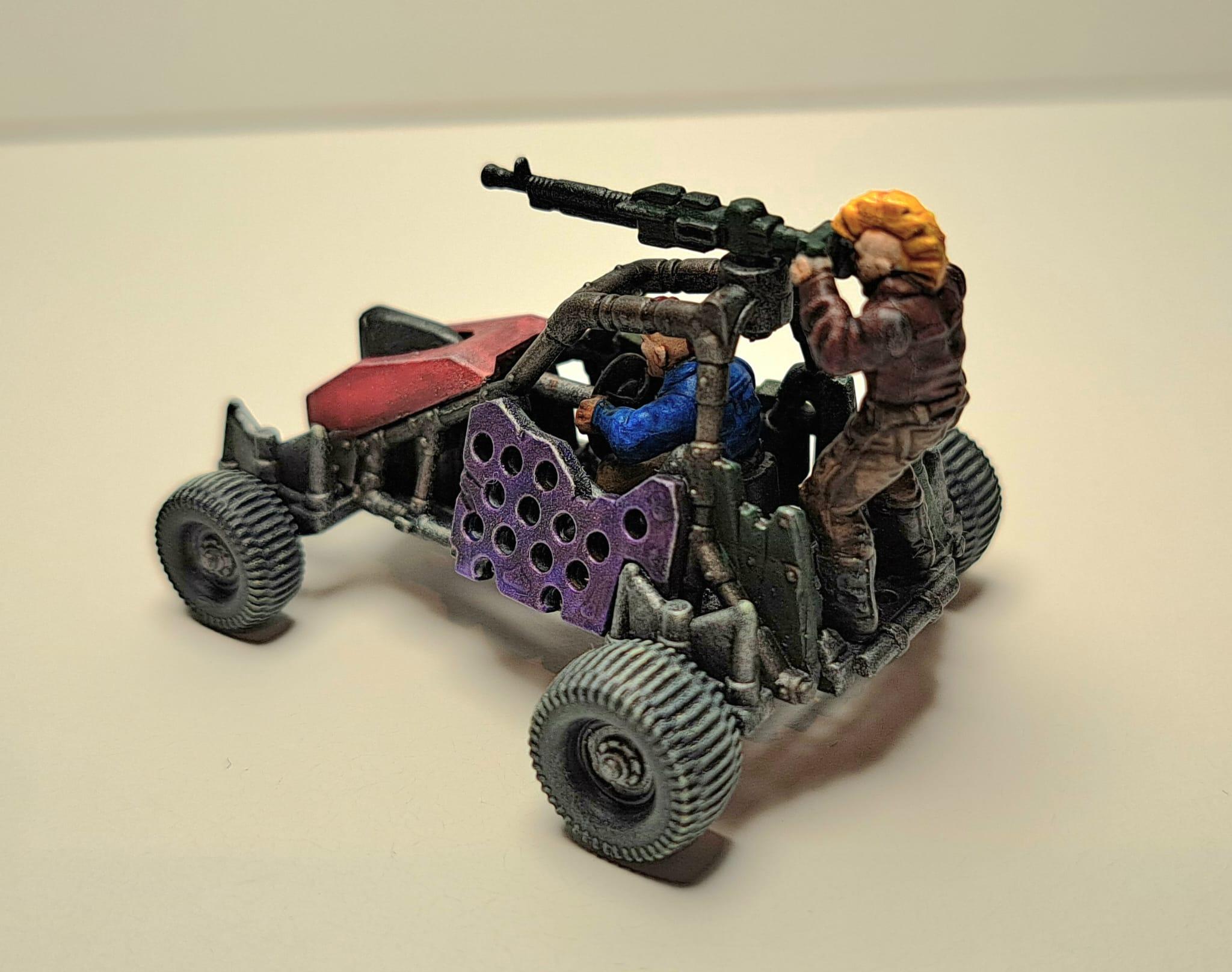 Aus dem Gaslands Implements of Carnage Two Plastik-Gussrahmen zauberte RCT die beiden "Gatsch-Hupfer" und den doch schwer bewaffneten Buggy. Vor allem die mobilen, nicht zu unterschätzenden Bikes werden die kommenden Spiele interessanter machen.