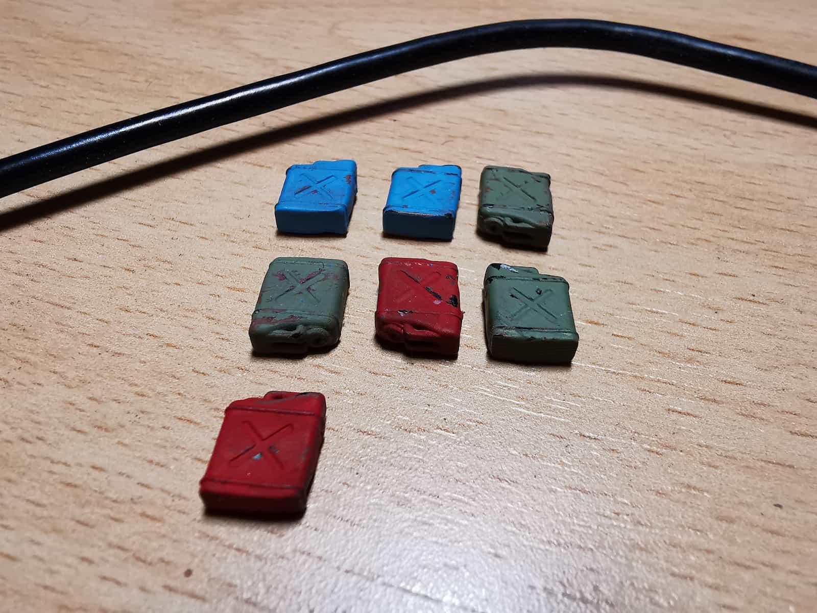 Im Gegensatz zu den Fässern wurden die Kanister um die Farbe Grün erweitert. Ich denke, dass Grün hier richtig gut zu den "Jerry Cans" passt. Darauf konnte ich einfach nicht verzichten.