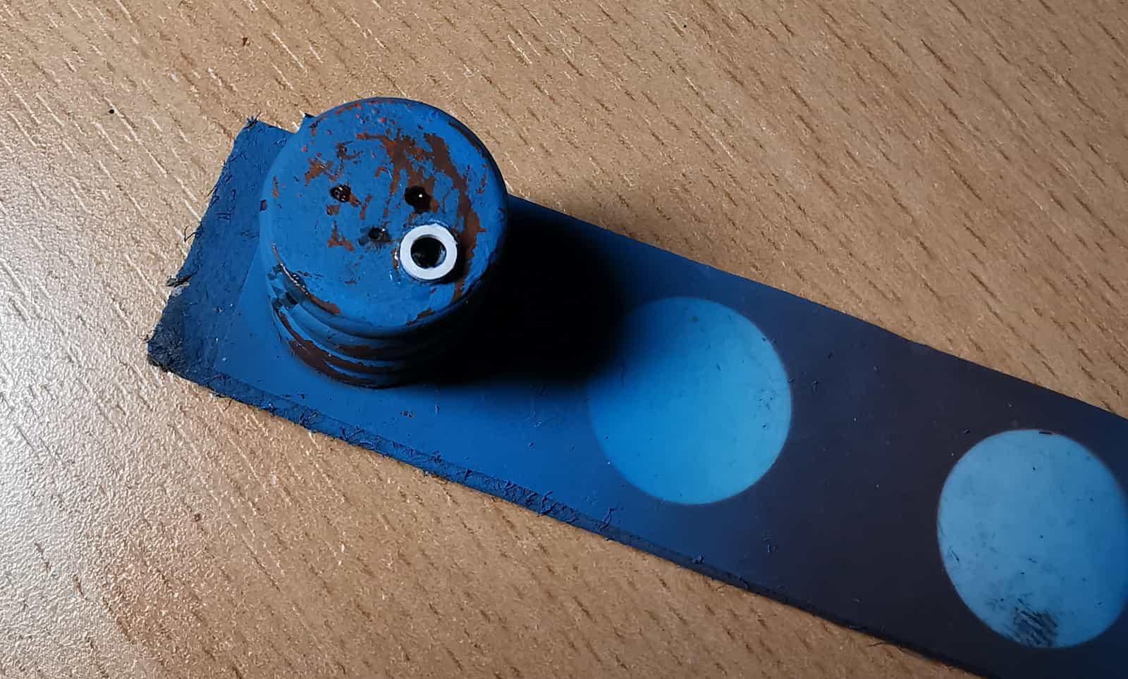 Im nächsten Schritt wurde die Oberfläche der mit den Grundfarben besprühten Objekte mit einem Haarspray fixiert und mit etwas Wasser und Zahnstockern, alten Pinseln und feinen Feilen wieder entfernt. Daduch kam teilweise der rostige Untergrund zum Vorschein.